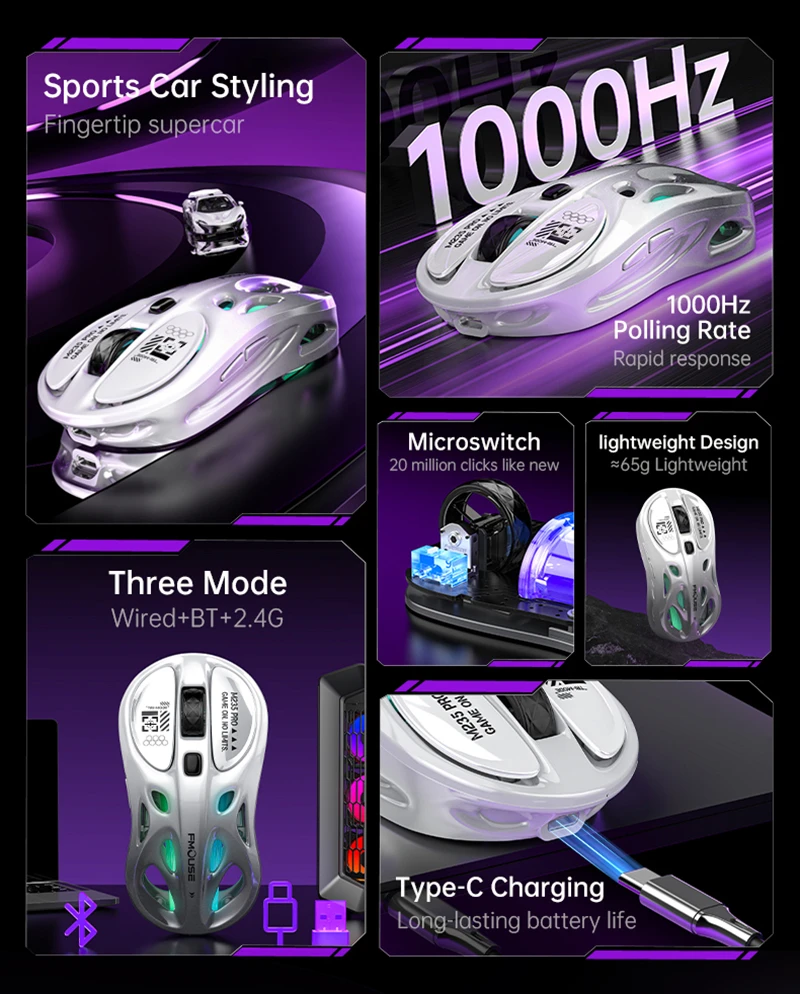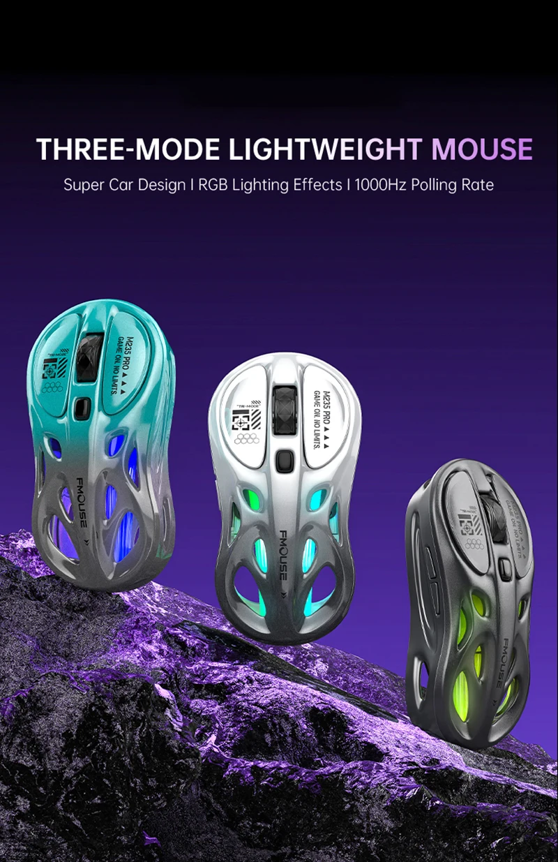 Wireless 2.4G Tri-Mode Rgb Gaming Mouse Hollow Lightweight Design With Chroma Lighting Wired Bluetooth E-Sports Mouse Controller